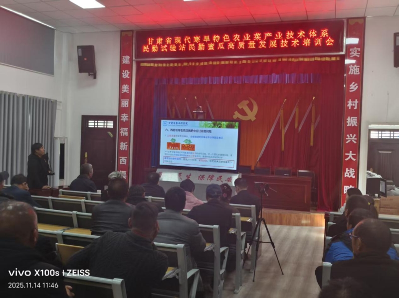 为推进民勤蜜瓜产业高质量发展,11月14日,民勤蜜瓜产业高质量发展技术培训会在西渠镇举办。 培训会特邀我院土壤与肥料研究所科研人员、甘肃省现代寒旱特色农业瓜菜产业技术体系民勤试验站站长罗双龙,以及蔬菜研究所杨永岗研究员、生物技术研究所裴怀第副研究员联合授课。
